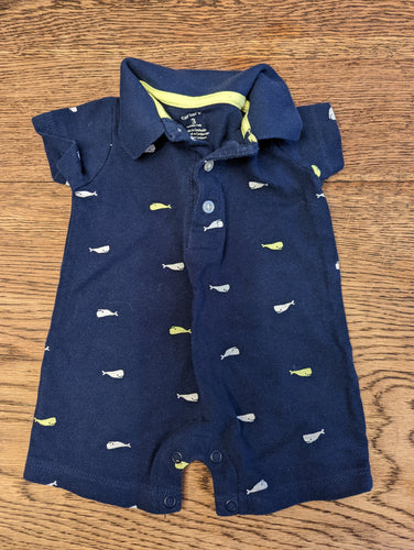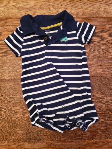 Carters Turtle Blue/White Stripe Romper 3 Months