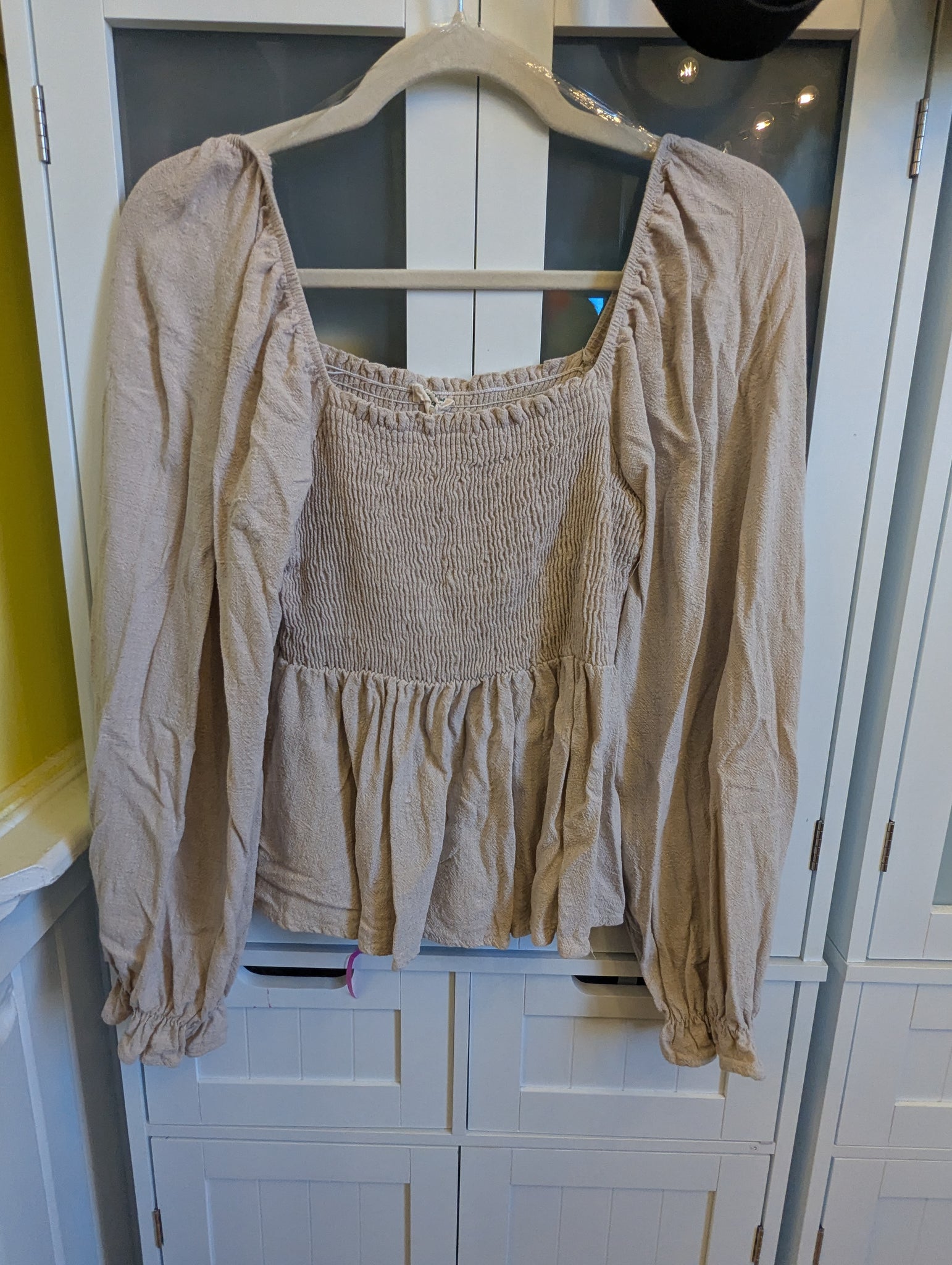 This charming linen blouse brings effortless versatility to your wardrobe! The elastic neckline lets you style it your way—wear it up for a polished look or down for something more relaxed and breezy. Ruching across the top adds flattering texture and dimension, while long sleeves with elastic wrists keep things comfortable and put-together. Perfect for layering or wearing solo, this tan beauty transitions seamlessly from casual days to weekend adventures.
