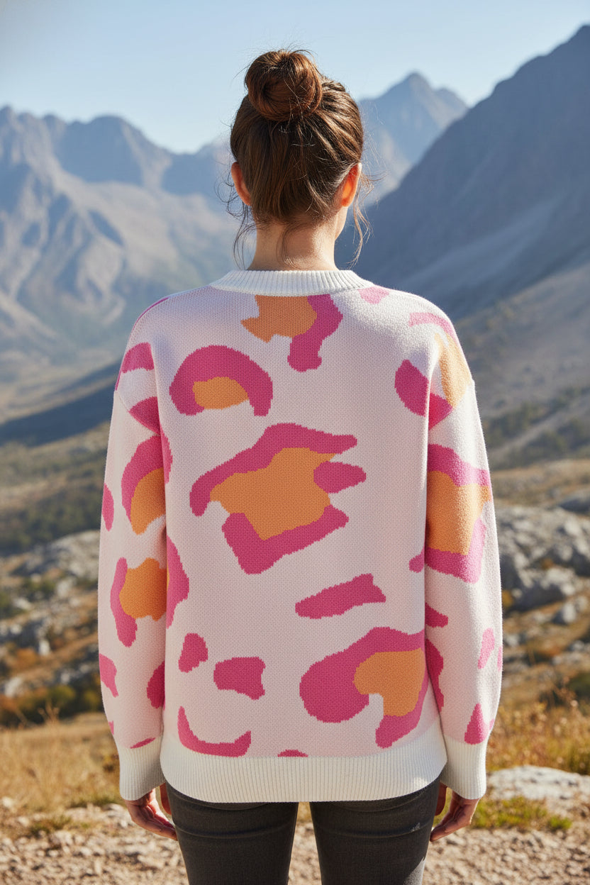 The Henhouse Leopard Sweater brings wild style to your everyday wardrobe with its bold leopard print that commands attention. Crafted from super soft knit in gorgeous pinks, this pullover wraps you in cozy comfort. The relaxed fit features drop shoulders and a loose, baggy silhouette that feels effortlessly laid-back—perfect for those days when you want to look put-together without sacrificing comfort. Whether you're lounging at home or stepping out for casual adventures, this sweater is your go-to piece for adding a playful, trendy vibe to any outfit.