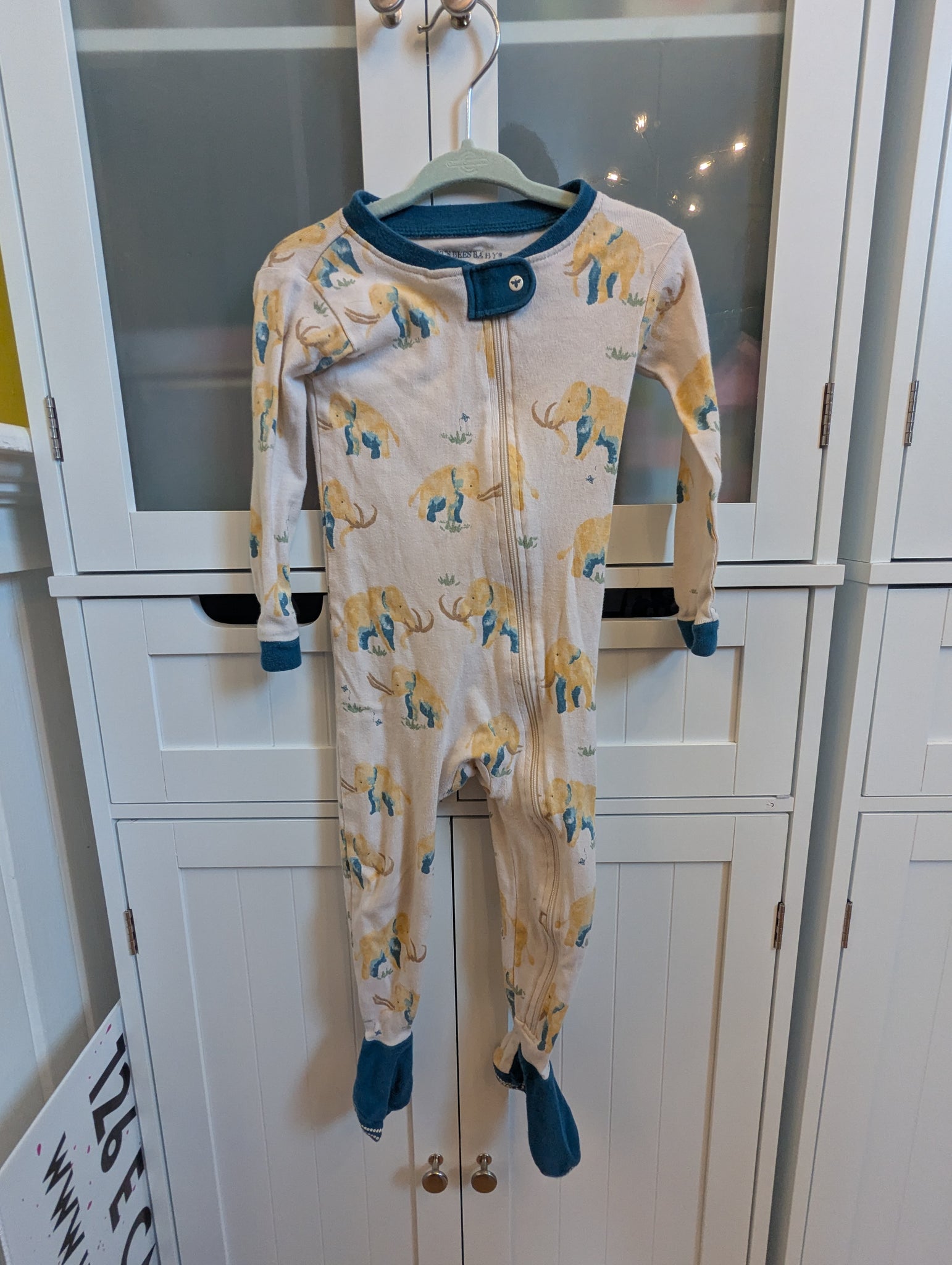 Get cozy in these adorable Burt's Bees elephant footed pajamas! Made with soft, gender neutral fabric, these pajamas are perfect for your little one. Plus, the playful elephant design adds a touch of cuteness. A must-have for your 18m baby!