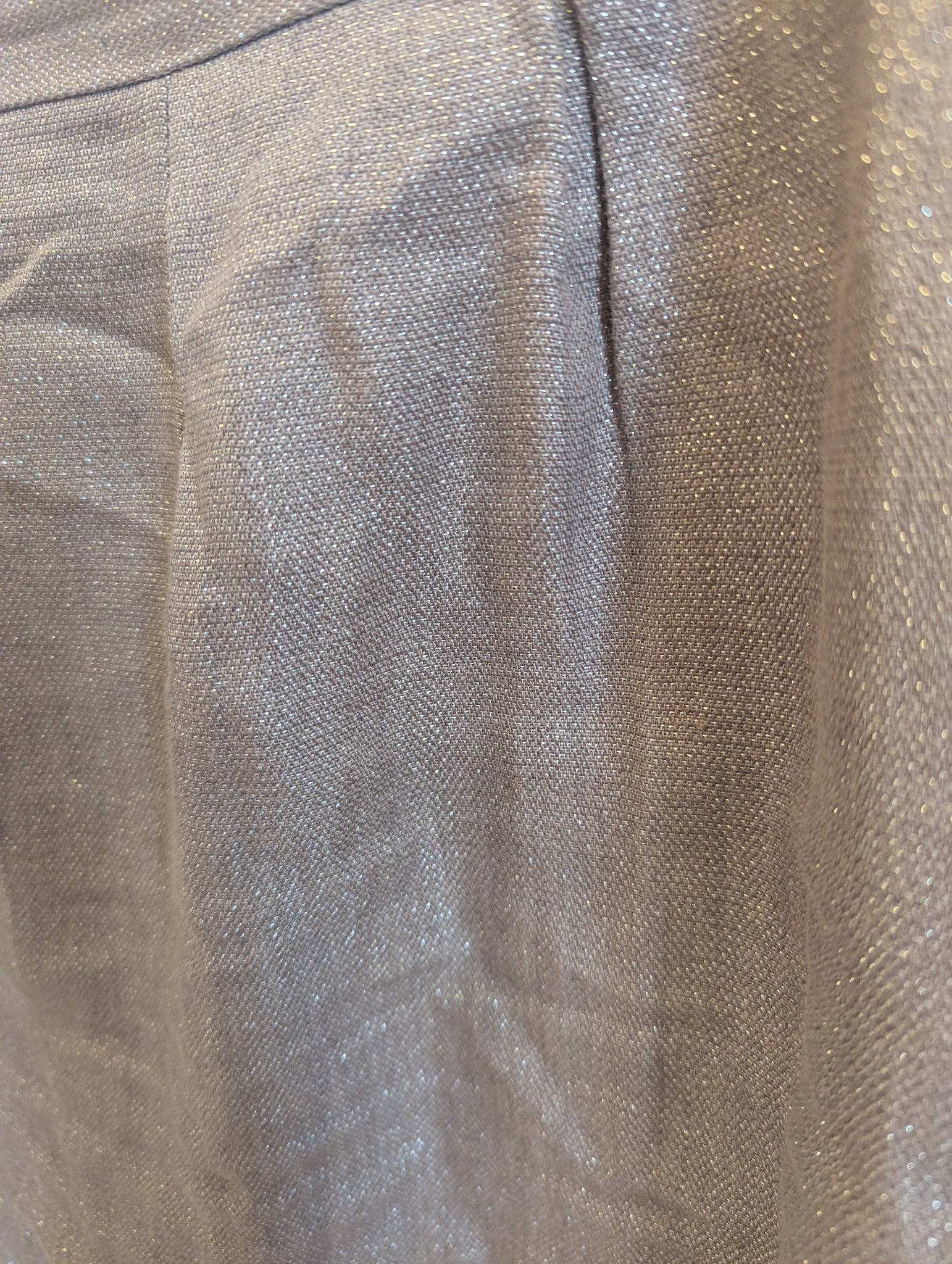 Elevate your wardrobe with this sophisticated Halogen taupe sparkle linen skirt. Crafted from premium linen, this size 8 piece features a refined taupe hue enhanced with subtle sparkle detailing that catches the light beautifully. Practical golden side pockets add both functionality and style, while the flattering silhouette works seamlessly from office to evening occasions. The breathable linen fabric ensures comfort throughout the day, making this a versatile essential for any discerning wardrobe.